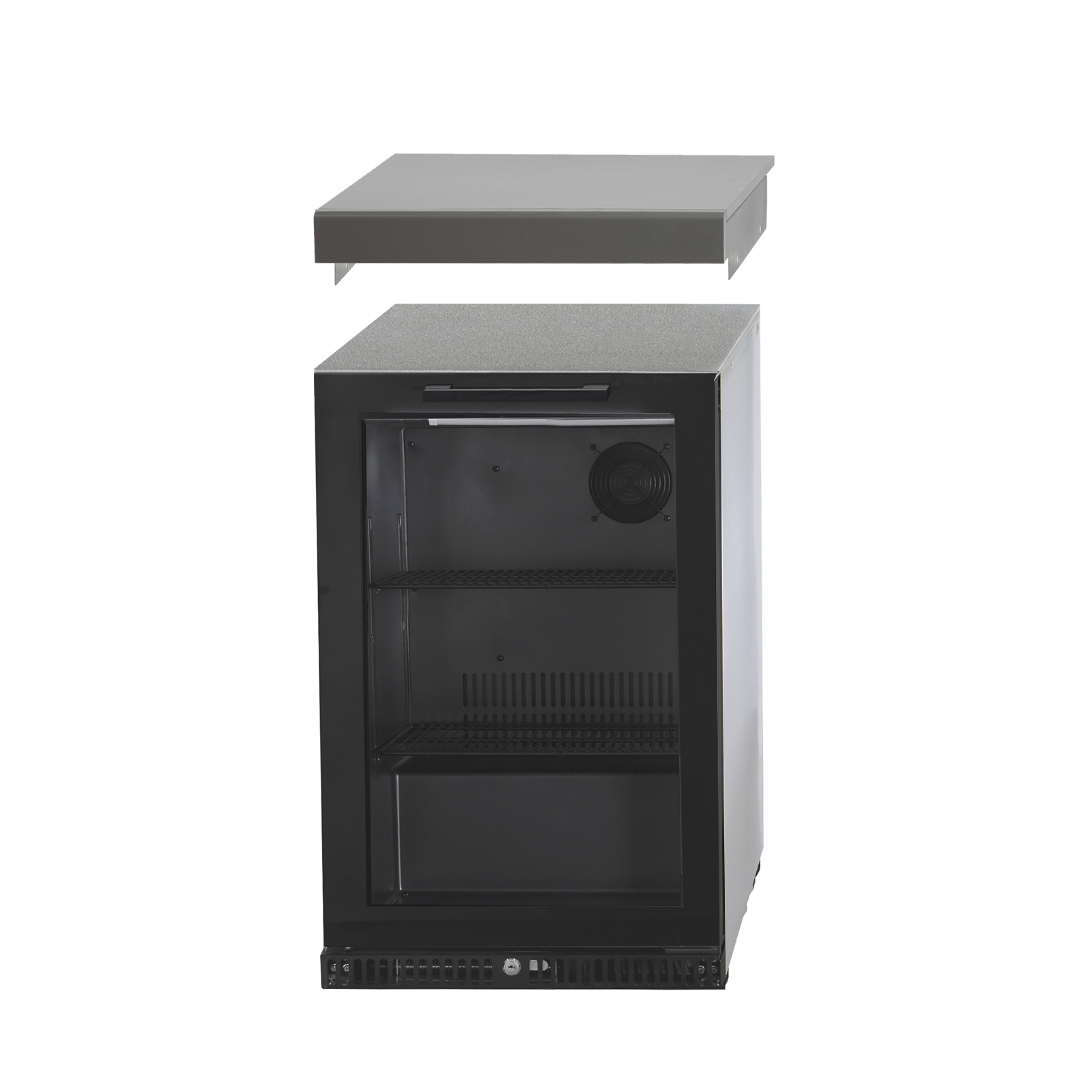 The Gasmate Galaxy Gen2 1 Door Premium Fridge Top has a sintered stone top with durable darker powder coated fascia so that the fridge integrates perfectly with your Gasmate Galaxy Gen2 Outdoor Kitchen. Suits Gasmate 1 Door 97L Premium Glass Door Bar Fridge.