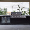 The Gasmate Galaxy Black 6 Burner Gas BBQ now features a stunning black hood for even more appeal. For the ultimate in luxury outdoor cooking areas, choose the Galaxy 6 Burner BBQ as your centrepiece. This premium 304-grade stainless steel BBQ has all performance and features you would expect from a superior outdoor kitchen. A large glass viewing window in the BBQ hood matched with internal lights allows you to admire and monitor your food as it cooks. LED lights over the control fascia add atmosphere and illumination, so you know the level of heat from each burner. There is a rear ceramic gas burner for rotisserie cooking for increased cooking options. The Galaxy’s 6 burners output 100MJ/hr of grilling power, and it also boasts a high-output side burner for use with woks or large frypans. The Galaxy 6 is the centre module for your outdoor modular kitchen and other modules; such as a sink unit, storage unit, 3 drawer unit and fridge unit can be added to create your own unique outdoor dream kitchen. Available exclusively from Harvey Norman.