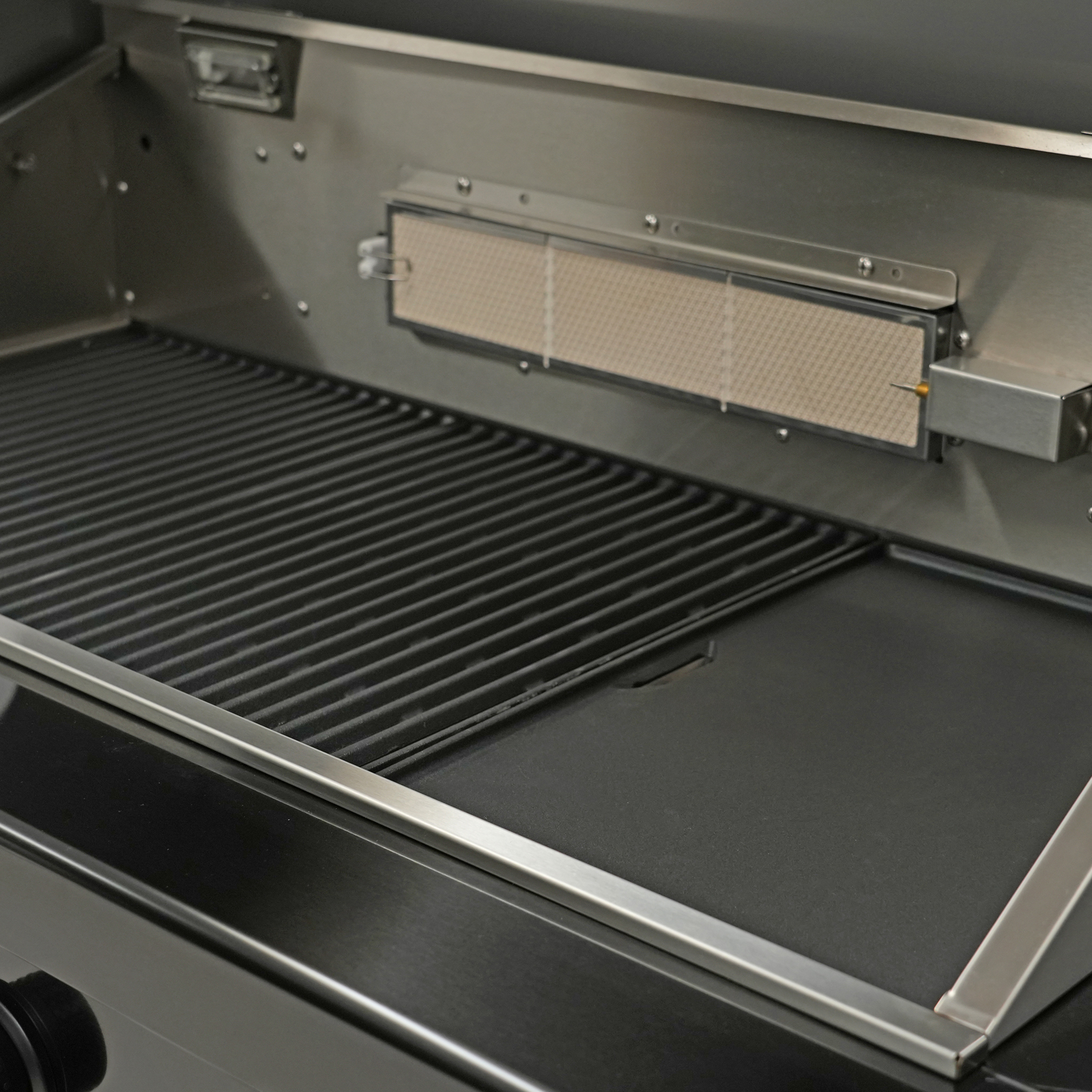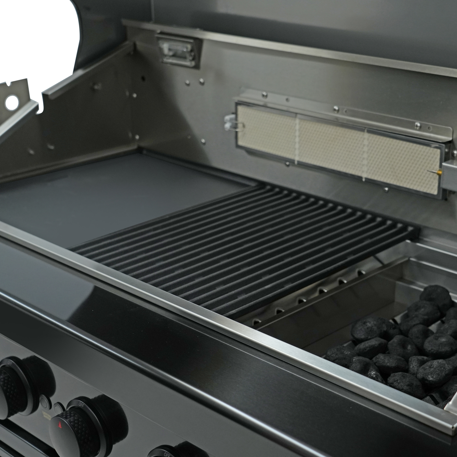 - Stainless steel flame tamers for controlled heat distribution and to minimise cooking fats flaring up